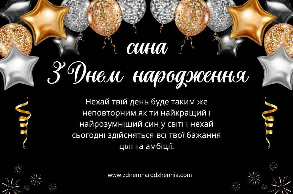 Вітаю з днем народження сину. Я молюся щоб Бог дав вам змогу зробити вас щасливими реалізувати всі ваші прагнення та досягти успіху в усіх сферах життя.