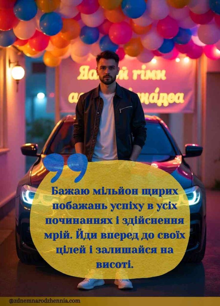 Бажаю мільйон щирих побажань успіху в усіх починаннях і здійснення мрій. Йди вперед до своїх цілей і залишайся на висоті.